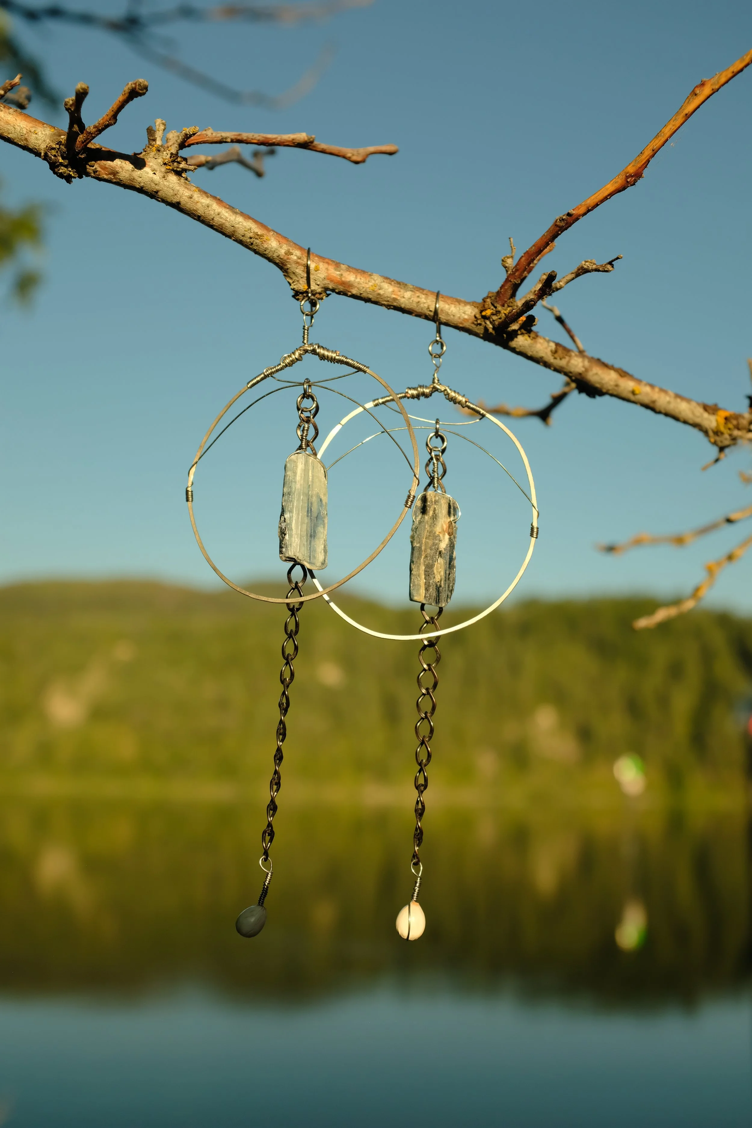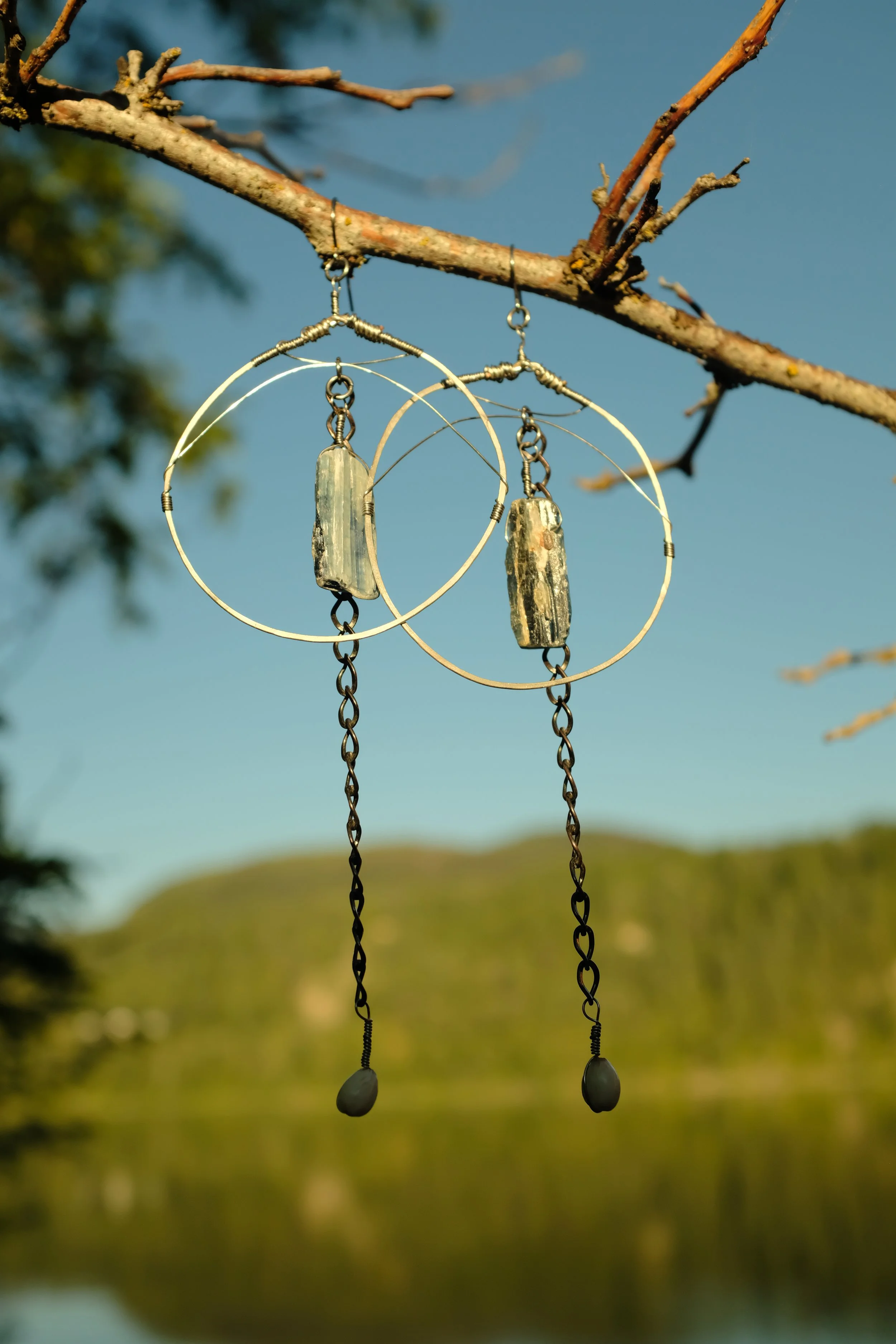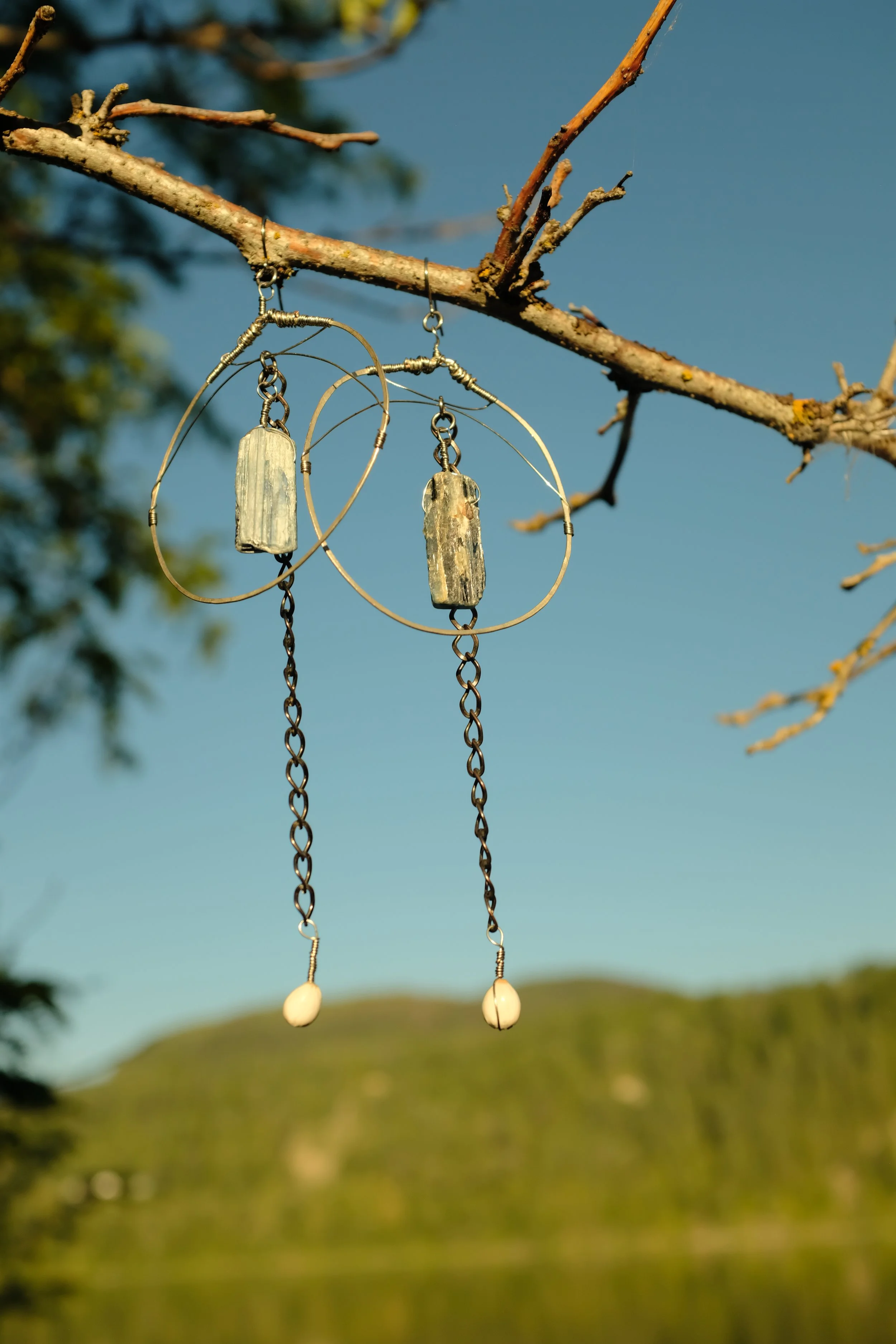 A signature earring style from Bones of the Earth, these brass hoops feature wire wrapped elements & a pair of glowing tigers eye crystals. All materials are high quality ~ natural stones, hypoallergenic metals & ear wires ~ perfect for sensitive skin.