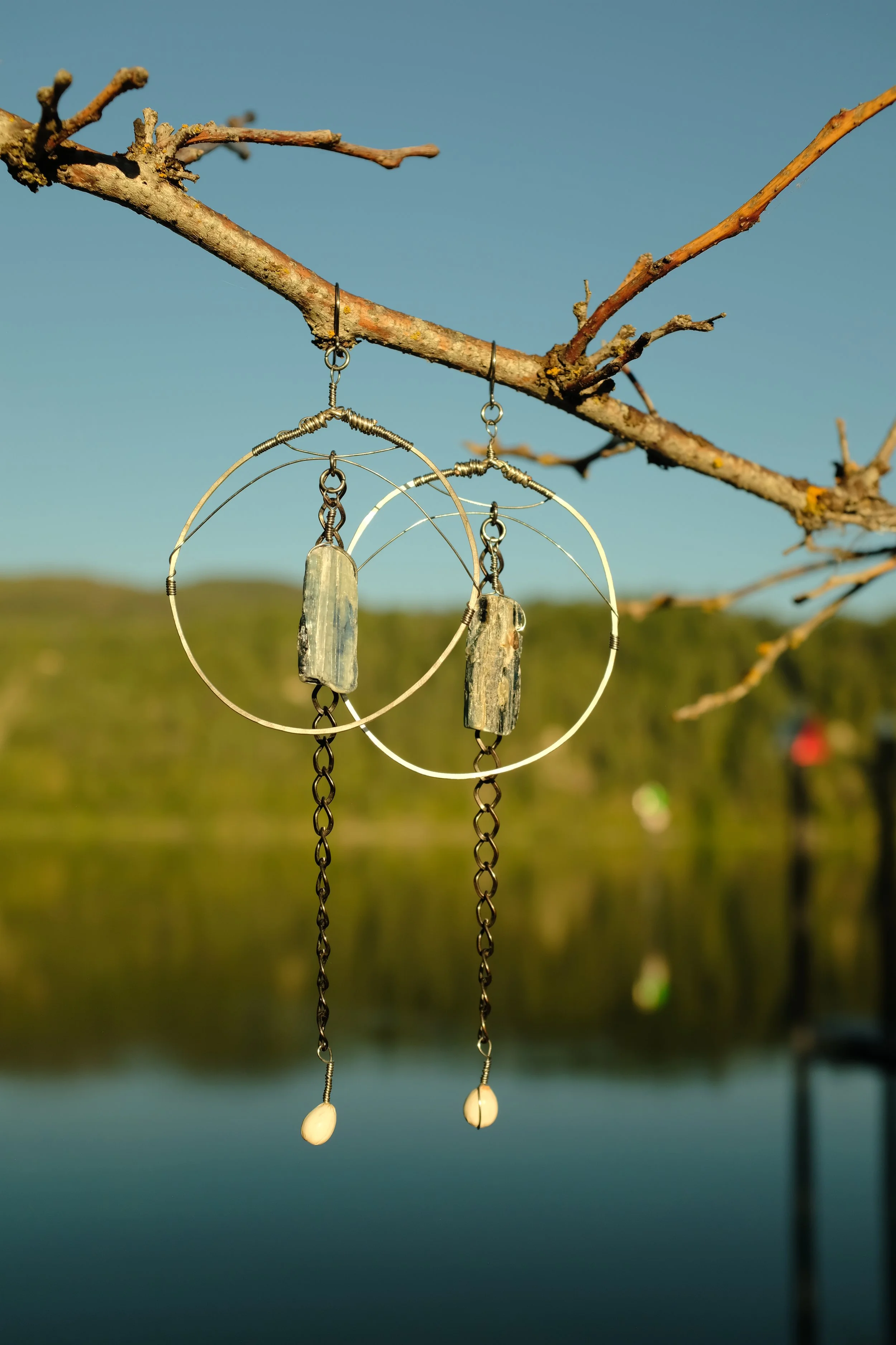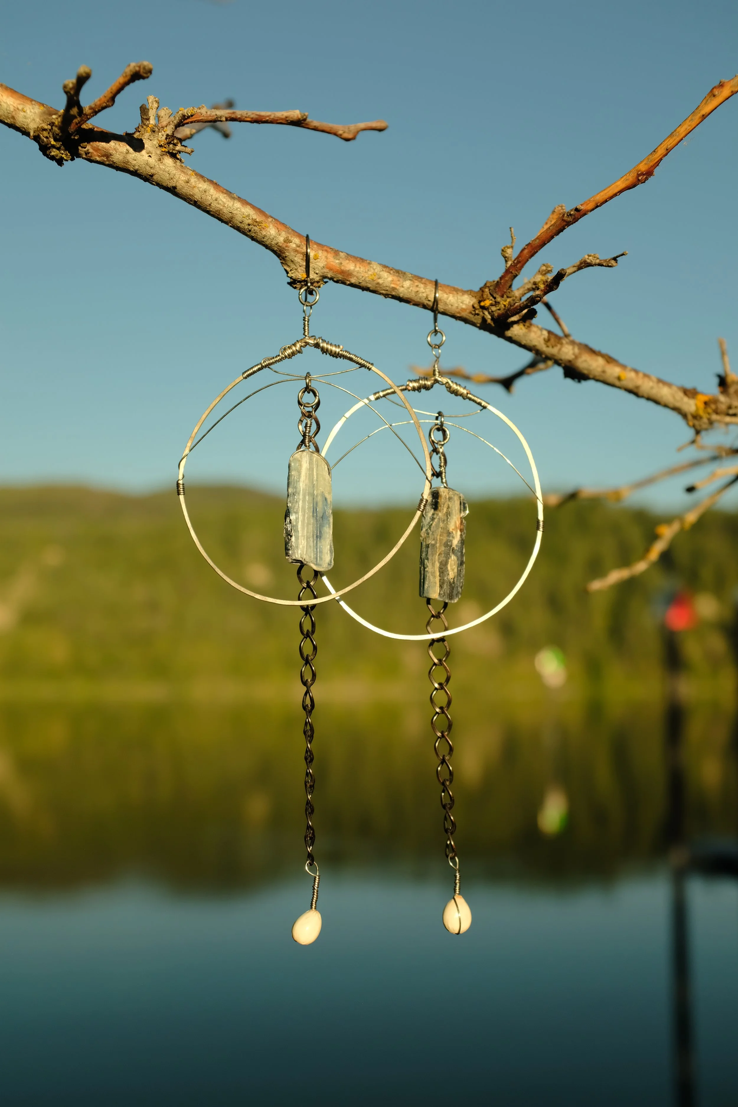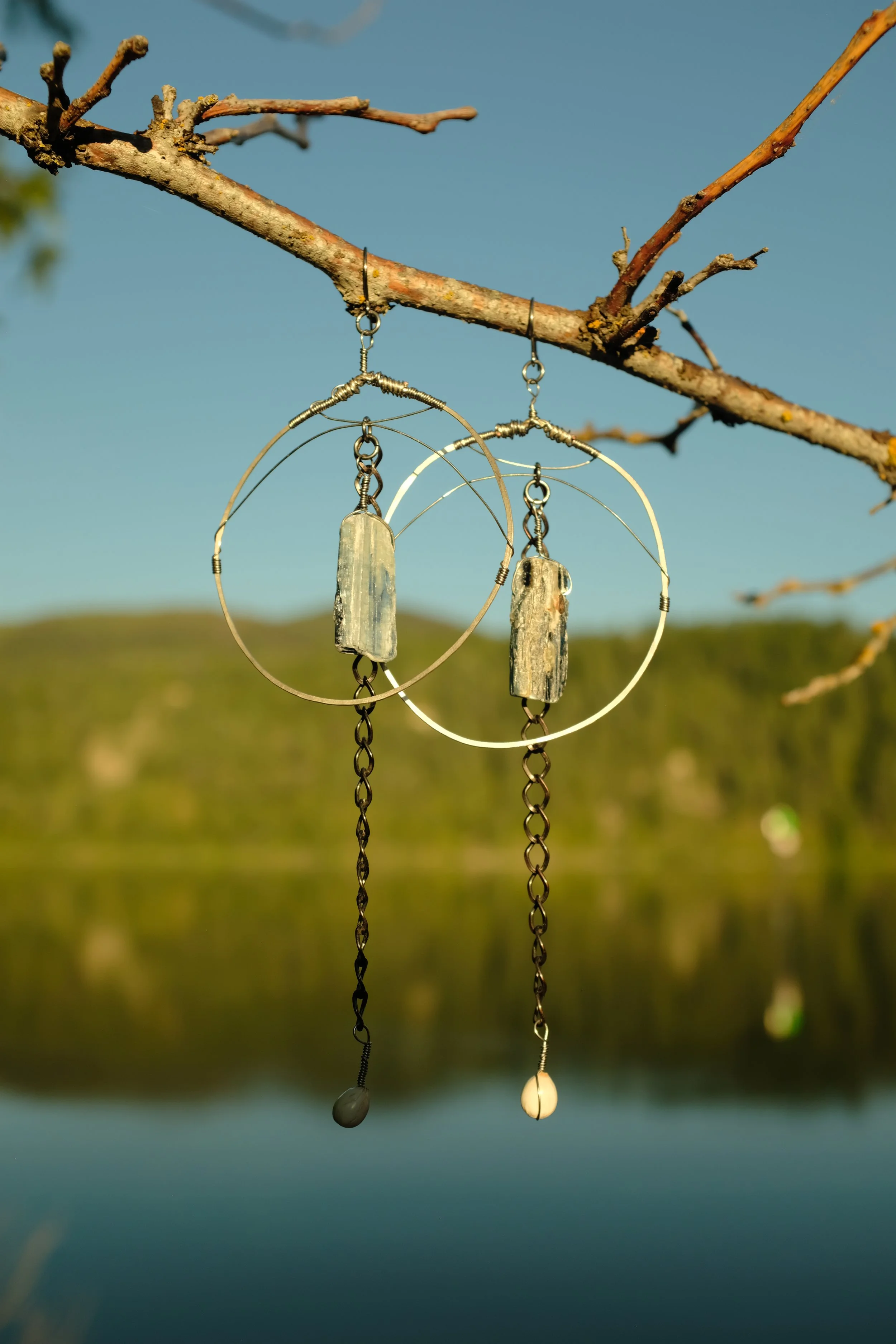 A signature earring style from Bones of the Earth, these brass hoops feature wire wrapped elements & a pair of glowing tigers eye crystals. All materials are high quality ~ natural stones, hypoallergenic metals & ear wires ~ perfect for sensitive skin.