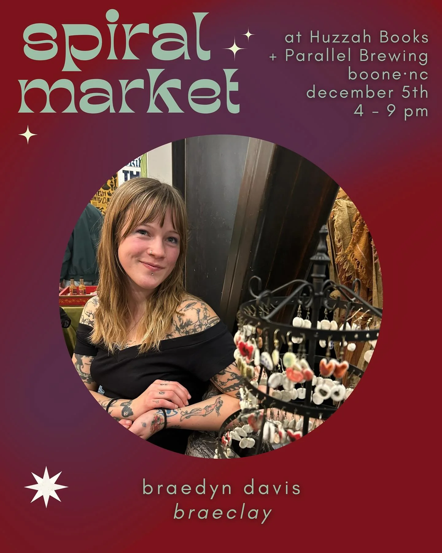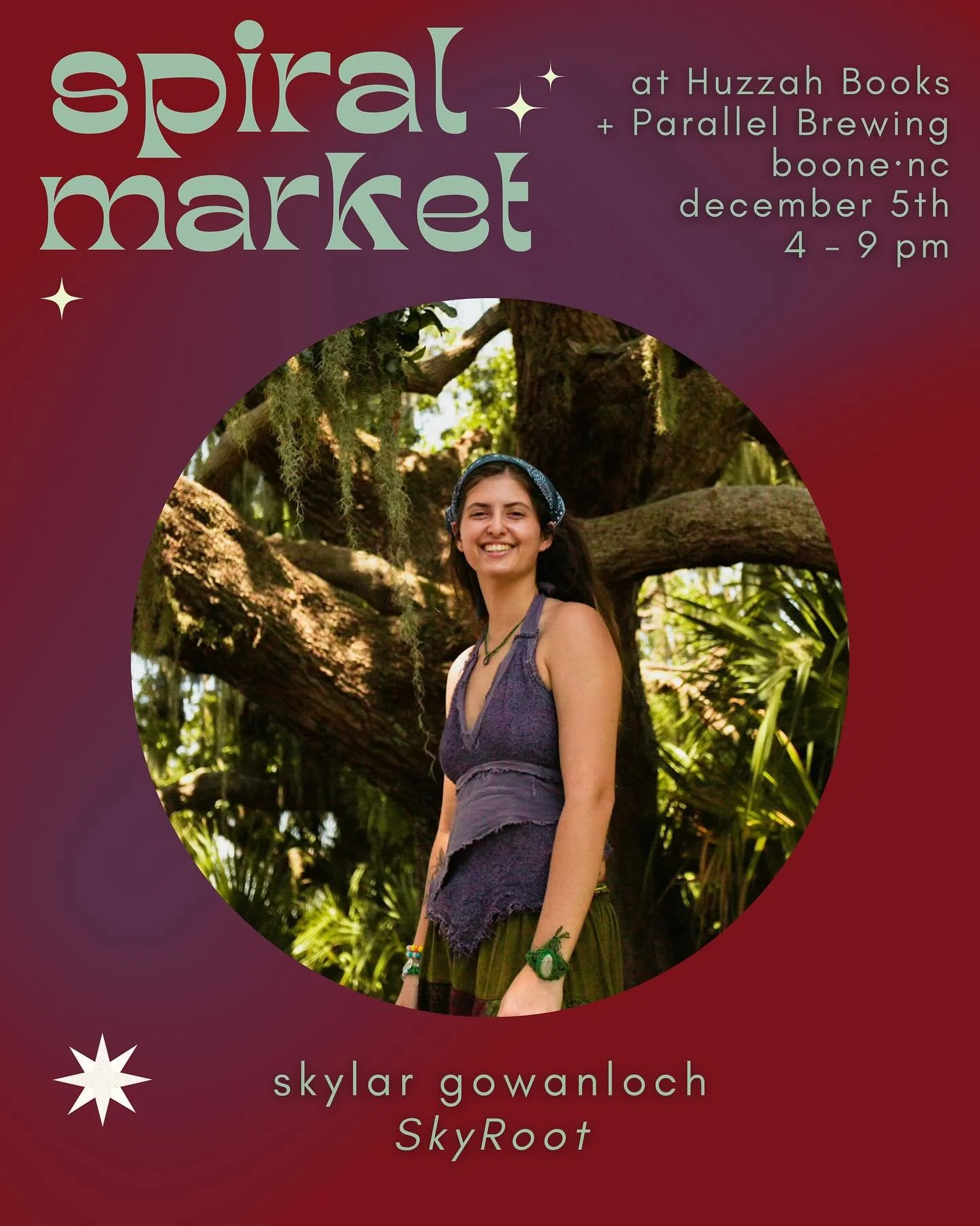 Spiral Market is more than a shopping experience but a community space to recharge, learn something new, play and explore, practice your creativity, enjoy nourishing food, browse unique art, and partake in a variety of different offerings from the local community of the High Country, Asheville, Western North Carolina, and creatives located throughout various NC regions.