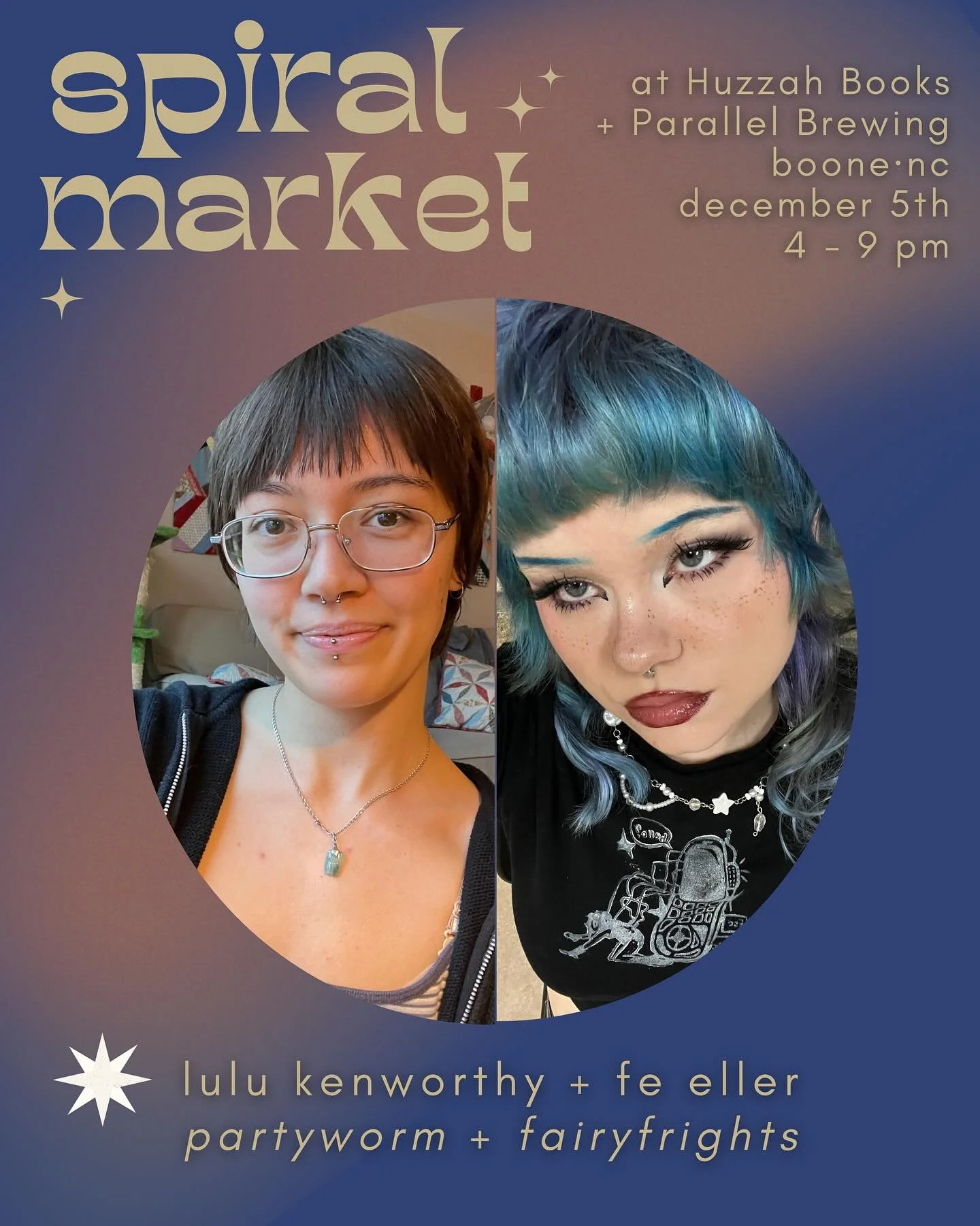we curate seasonal markets in partnership with Huzzah Books and Parallel Brewing Co based out of Boone, NC. we currently have availability & are seeking an Asheville based venue to partner with on a seasonal & pop-up basis.